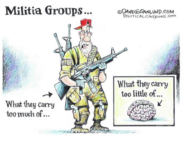 Heard disturbing interview with some militia people who swear that civil war is coming soon, and it is obvious hearing them talk that they live in a world that is detached from reality and they are more than fine with that. In that world all their lunatic ideas can reside and bounce off one another and they are hypnotized watching the sparks. Militias have existed for decades or more, but were tucked away in the hills and deep woods. Now that the former guy stirred them all up every single day, and poured gasoline on their whiny grievances of being the ‘oppressed white man’ boo hoo and maybe read a decent, accurate history book, they’re about to explode. They have become the number one threat to peace and safety in our country. They get their news from sources that lie and distort all day and night and they swallow it all whole. Zero critical thinking occurs and a whole lot of hate for the ‘others’ who they are sure just want to take away everything that makes their lives so ‘rich’.