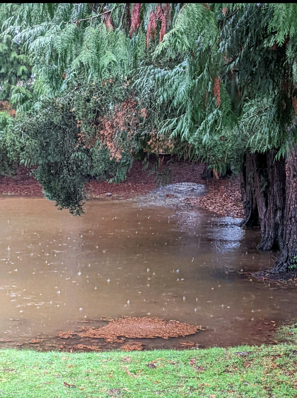 It’s been snowing and raining here over the past week so the ground is real wet and we have a large common area behind our house that is sunken for some reason with a big boulder in the middle… and it was taking all the water off the street behind the fence that’s up a little ways to the back and the water was rushing down like a short waterfall over the hill and I was starting to worry… I even called the insurance man about flood insurance, but this is a “low-risk” area and so they, along with the HOA, think that we’ll probably be able to weather this. The HOA manager said that they’ve managed this Kent Shires complex where we live for many years and then there is never been a flood so that’s good news, but it was a little scary there for a while and the water in the large indentation rose another inch or so during the night, but we’re a couple days now without rain according to the forecast so that should let it sink into the ground/evaporate some.