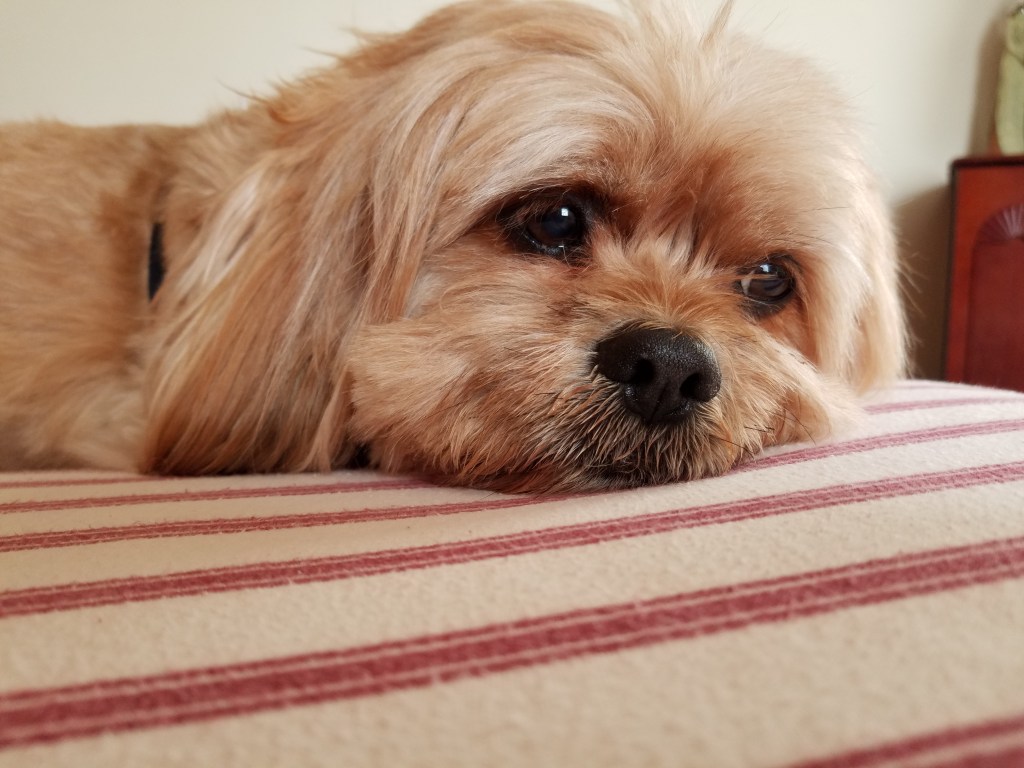 I respond to a written recommendation from someone referring to poetry to “write something every day” no matter what or how much…so here we go. The western afternoon sun is shining hot on the roses, but they are sturdy and more than able to take it and I imagine them smiling and dancing in the light breeze. I admire my flower bed with satisfaction when both coming and going. I just went out to run errands and realize how even doing that there is poetry in it, there is art…always striving to see words rearranged in some unique way to describe whatever I’m seeing or hearing or doing. I try to get that down, dictating thoughts into my cell phone. A contrast between the old days of scrawling on a napkin or in a notebook and this century’s carrying the same bursts of inspiration, drafts, first lines, deep or shallow thoughts, and so on my smartphone. Trying to move, to be flexible, take steps, breathe, stretch, lean this way and that to feel a good burn, not wanting to turn so stiff that I can only remember or dream about moving. Listening to news from the other room as I hammer this out…the brain doing its amazing duty of keeping it separate, each thing in its place. Our dog is no more among us…and after 17 years of his being everywhere we were and went, his absence has hit us hard. We see him often in the photos that are streaming in a constant slide show on a device screen in our kitchen and each time his image comes up it calls for a sigh and a little prayer to him to rest in peace.